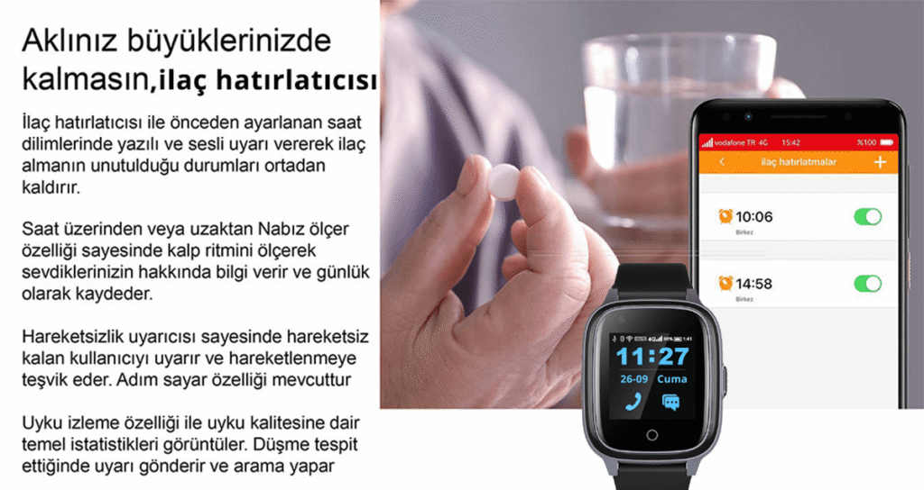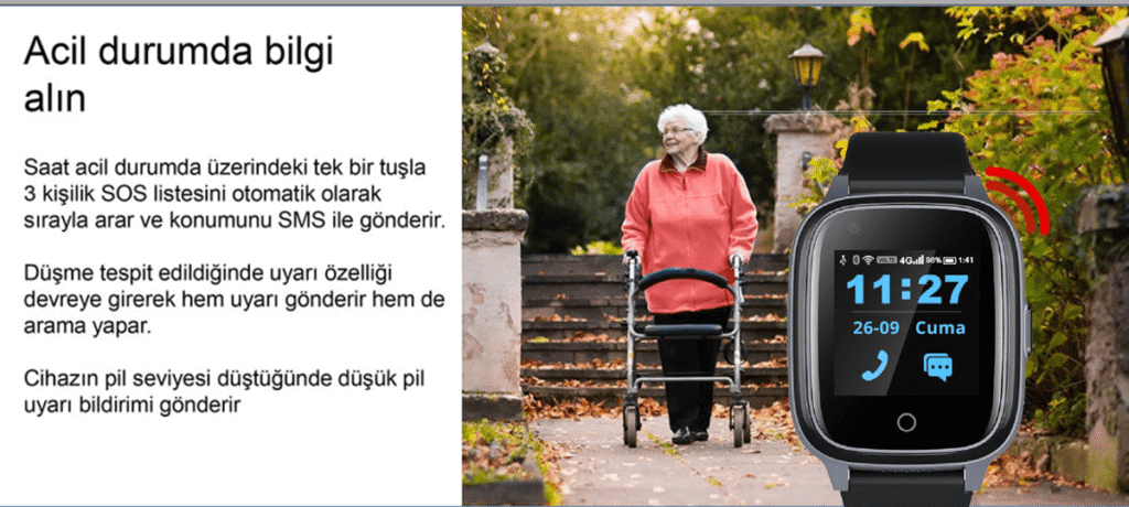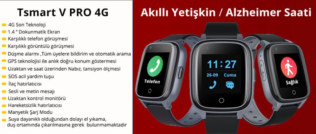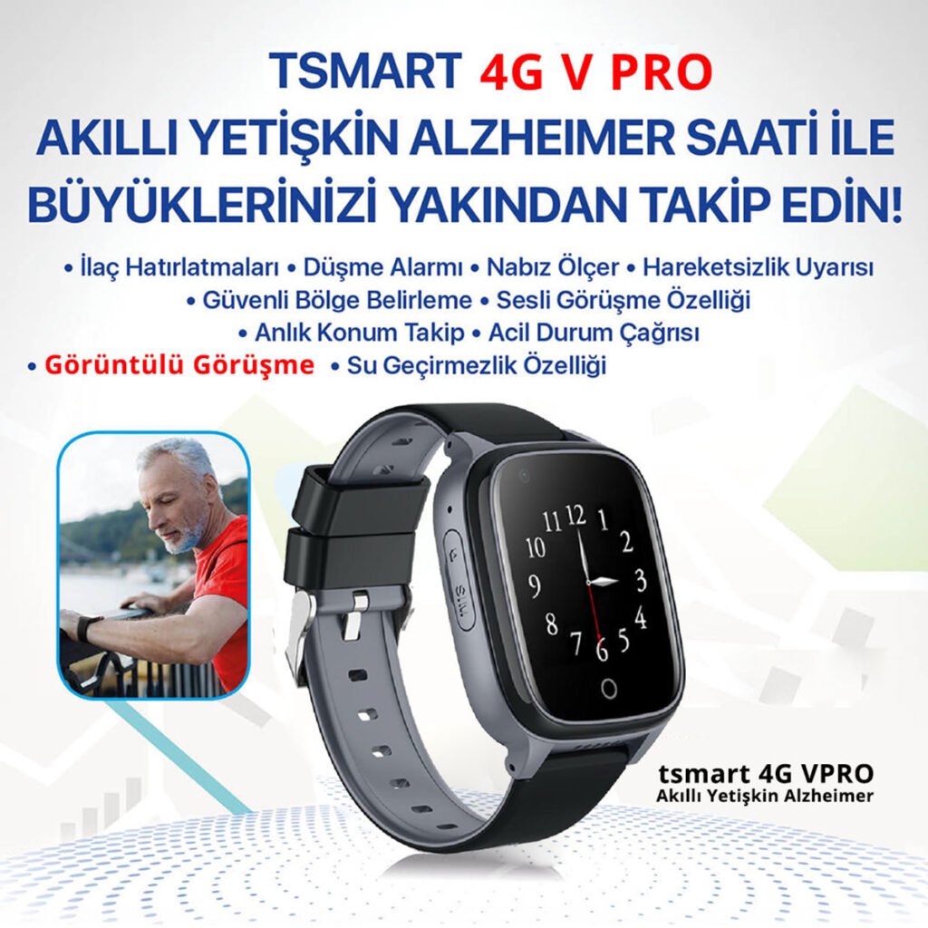 Tsmart 4G V PRO, 4G son teknolojisiyle donatılmış, yaşlı ve Alzheimer hastası bireyler için özel olarak geliştirilmiş bir takip ve güvenlik saatidir.