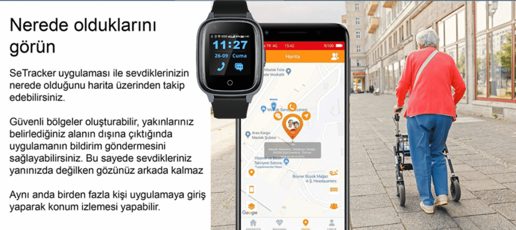 - GPS Konum Takibi : Gelişmiş GPS teknolojisi ile anlık ve doğru konum bilgisi alabilir, sevdiklerinizin nerede olduğunu harita üzerinden takip edebilirsiniz.
